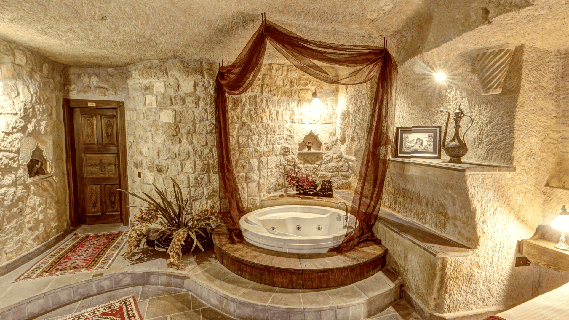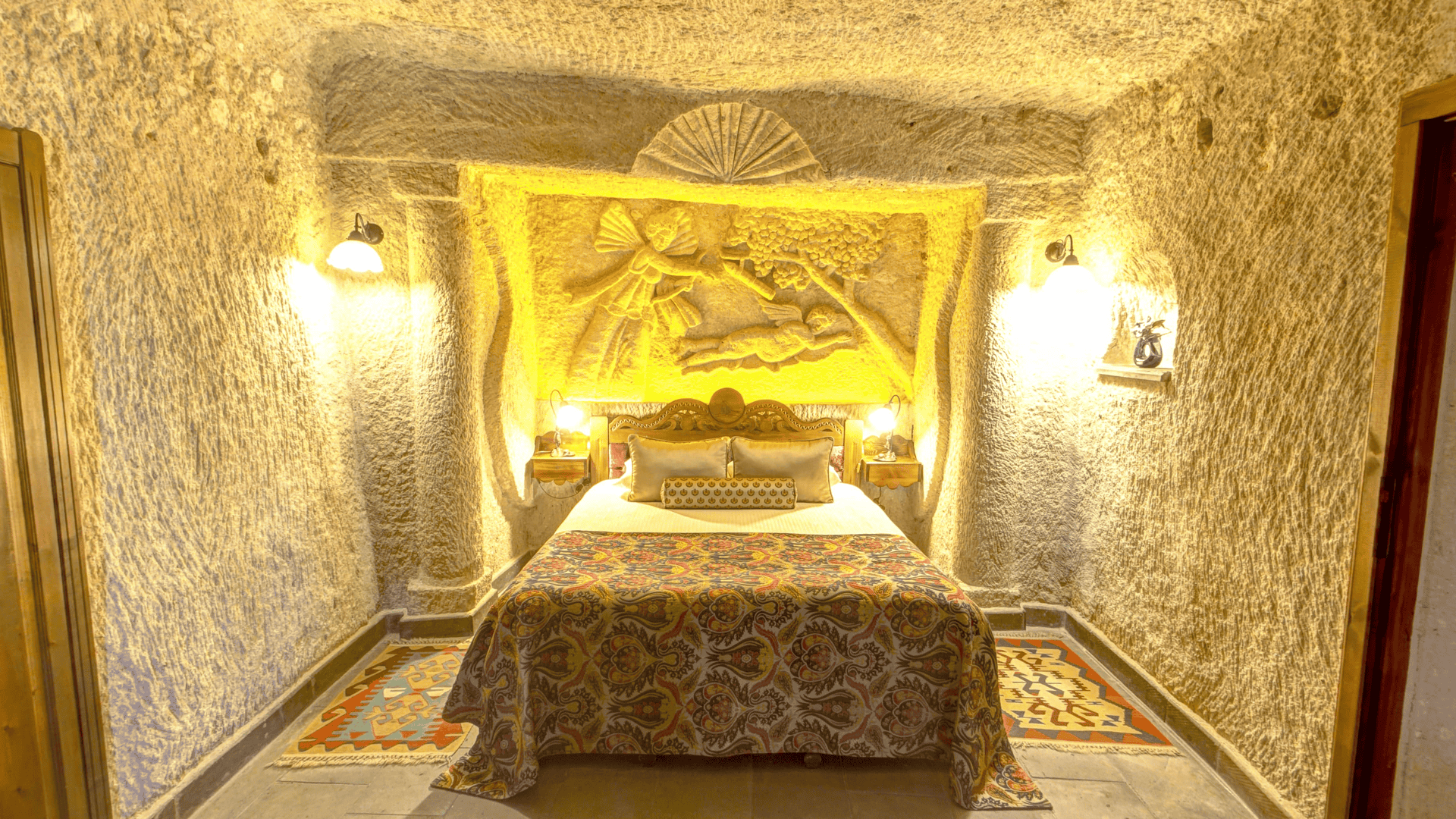All 8 rooms have independent doors opening to the terrace. You can enjoy the unique view of Göreme from each room. Miras Hotel features 8 cave-carved rooms, each meticulously decorated with our guests' comfort and convenience in mind. It offers 3 Deluxe Suites and 5 Deluxe Rooms, each with its own unique features. Our rooms are designed for double occupancy, and they are non-smoking. The rooms also showcase remarkable carvings, handcrafted by a skilled stonemason. Miras Hotel, presenting the cave hotel experience from a different perspective, invites you to explore as every door opens to a different world.